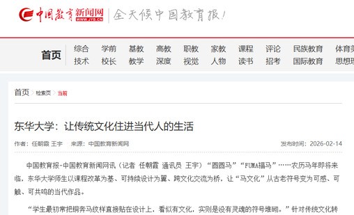 中国教育报-中国教育新闻网讯(记者 任朝霞 通讯员 王宇)“圆圆马”“FUMA福马”……农历马年即将来临,东华大学师生以课程改革为基、可持续设计为翼、跨文化交流为桥,让“马文化”从古老符号变为可感、可触、可共鸣的当代作品。