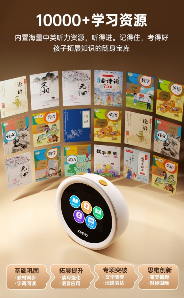 对于英语学习,它内置了语文/英语课文音频,孩子每天可随时播放课文朗读,磨耳朵、练语感,复习变得异常方便。对于语文,古诗词、成语故事、国学启蒙一应俱全。而对于学龄前儿童,它提供了启蒙认知、习惯培养等趣味内容。10000+中英听力资源,让孩子沉浸于语言环境中,“听得进、记得住”,自然提升成绩。
