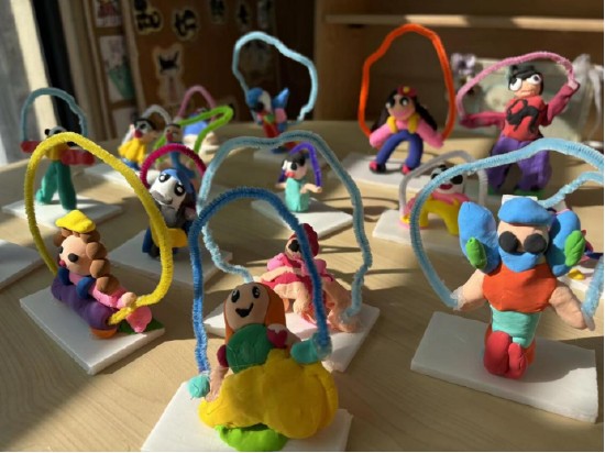 粘土区中,孩子们揉、捏、搓、压,塑造出双脚腾空、双手甩绳的自己,有的还配上同款发型与衣服,定格心中的跳绳瞬间。这些创意作品,既是孩子们对跳绳的直观表达,更藏着对参与跳绳运动的热切期待,为后续实践探索埋下伏笔。