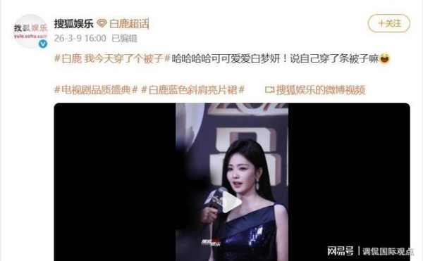 据3月9日报道,2026电视剧品质盛典红毯上,白鹿一句“我今天穿了个被子”的幽默自嘲,瞬间引爆网络,风头甚至盖过了她身上那件货真价实的法国高定礼服。当其他明星还在努力诠释“高级感”时,白鹿已经用最接地气的比喻,把自己和热搜第一牢牢“裹”在了一起。