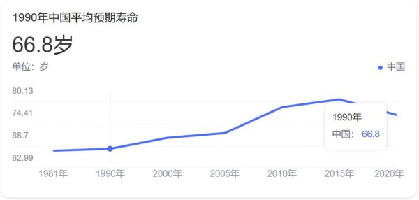 假设你是1990年出生,那年出生的人平均预期寿命是66.8岁,我们取整67周岁,男女寿命有差别,按照5岁算,那年女性平均预期寿命大致是70岁,男性算65岁吧。