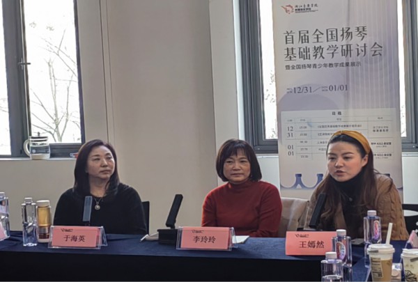 1月1日上午的专家面对面讲座,王嫣然老师带领学生聆听了由上海音乐学院附中应皓同副教授与中国民族管弦乐学会扬琴专业委员会会长、中国音乐学院博士生导师李玲玲教授的专业讲座。在1月1日下午的全国扬琴基础教学研讨会上,来自全国各地的扬琴专家对于扬琴基础教学进行了深入探讨,我院音乐舞蹈学院扬琴教师王嫣然在研讨会上发言,就扬琴教学中存在的问题及教学改革思路提出了切实可行的意见建议,受到与会人员的一致认可。