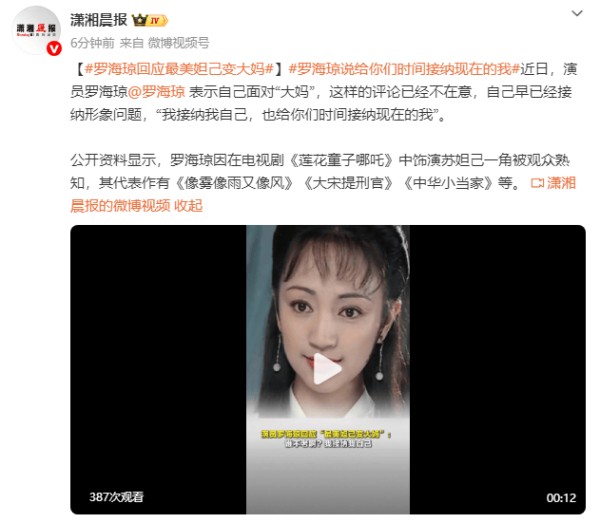 被吐槽“最美妲己变大妈”,罗海琼回应:坦然接受自然老去