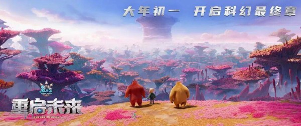到2025年的《重启未来》与2026年的《年年有熊》,主题的深化进一步牵引出类型融合与叙事空间的双重拓展。《重启未来》(2025)首次尝试未来科幻题材,既借鉴经典赛博朋克的未来都市风格,又融入生态科幻的奇观,以强烈的视觉对比展现科技发展与自然反噬的叙事主题。表面上看,这是为容纳科幻奇观而做出的技术升级,但从主题表达的角度审视,这一转向同样具有主动的产业策略意涵。当外部冲突从光头强伐木替换为外星势力入侵、未来文明存亡时,影片所承载的价值命题便从如何与邻居相处自然跃迁至如何与异文明共存、人类文明向何处去等更宏大的维度。