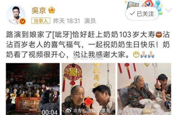 吴京合肥路演获谢楠103岁奶奶赠压岁钱