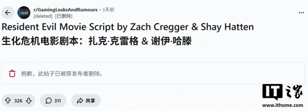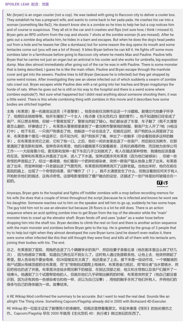 IT之家 3 月 10 日消息,媒体 eurogamer 昨日(3 月 9 日)发布博文,报道称恐怖片导演扎克 · 克雷格(Zach Cregger)执导的新版《生化危机》电影剧本在 Reddit 社区曝光,随后由于版权原因被迅速删除,这一举动反倒增加了爆料的真实性。