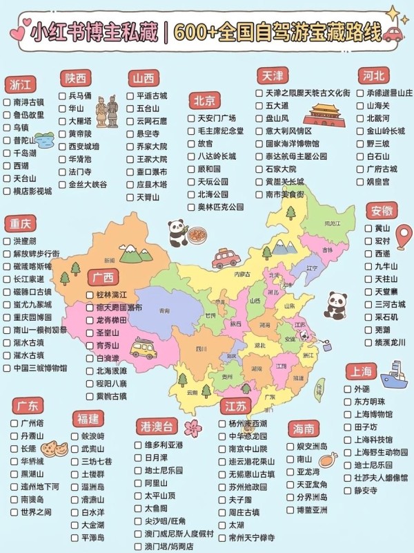 宝子们!小红书博主私藏的600 + 全国自驾游宝藏路线整理好了