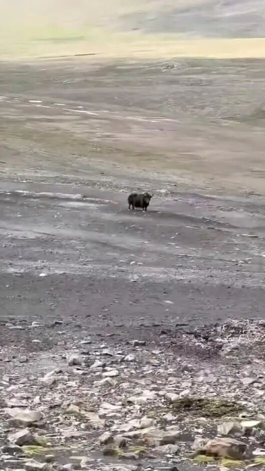 令人意外的是,第二天,他们又看到了一头野牦牛,虽然距离很远,但牦牛向他们飞奔而来时依然压迫感十足,他们把镜头拉近,可以清晰看到它奔跑的样子。