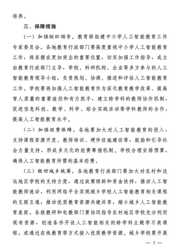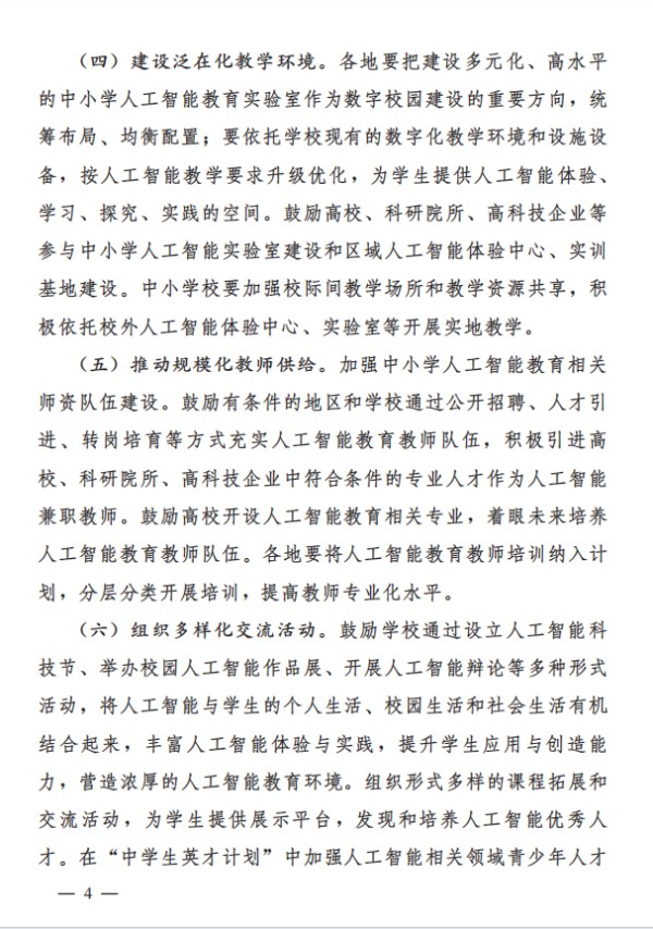 加大对AI教育的投入,支持课程资源开发、教师培训、硬件设施建设等。