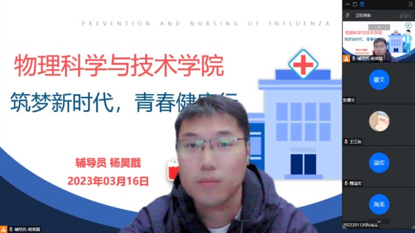 近期,随着新冠防疫措施的逐渐宽松,人群流动性显著增加,包括流感在内的季节性流行病在全国多地呈增多趋势。为预防流感、诺如、艾滋等常见传染病在校园内的流行与传播,物理科学与技术学院按照《传染病防治法》、《学校卫生工作条例》及金牛区疾病预防控制中心的要求于2023年3月16日19时组织开展了研究生“预防流感”健康教育活动,活动由学院研究生辅导员杨昊戬主持,物理学院全体硕博研究生参加了此次活动。