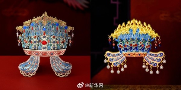 左图为木质凤冠冰箱贴,右图为AR金属凤冠冰箱贴。(中国国家博物馆供图)