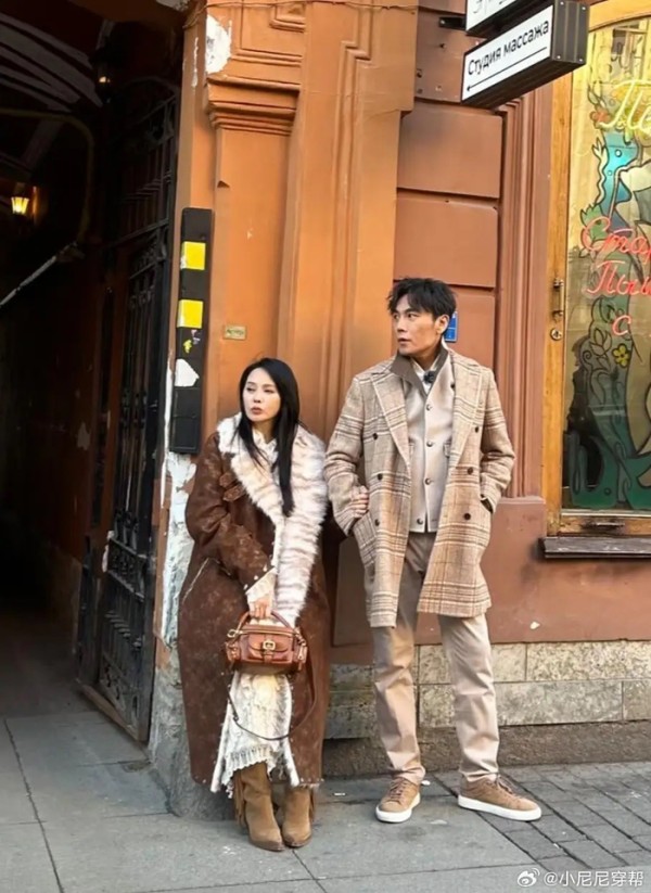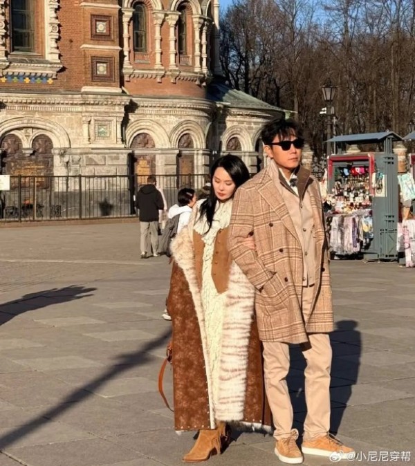 伊能静秦昊俄罗斯旅游被偶遇,夫妻时尚有型状态年轻