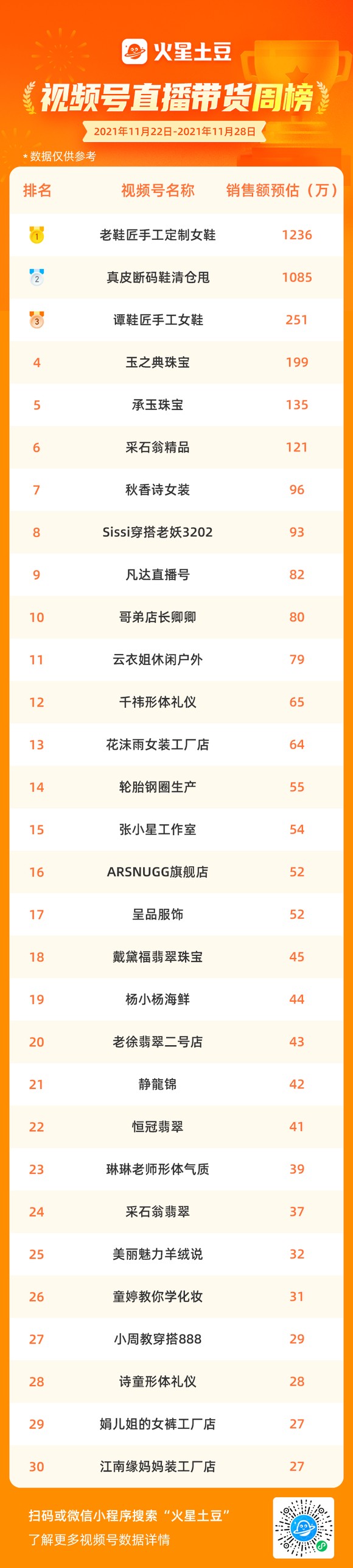 专业视频号数据分析工具火星土豆独家视频号周榜:品牌自播成爆款