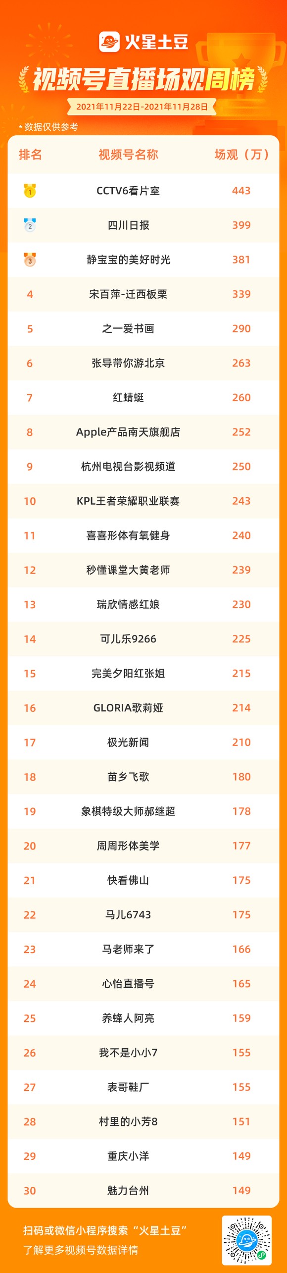 视频号直播场观周榜