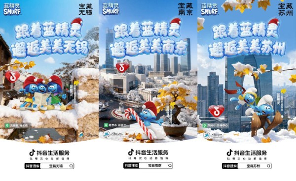 蓝精灵IP的加入,则让江南秋冬更添童趣。抖音生活服务打造蓝精灵主题“美美巴士”,在南京、苏州、无锡三城核心商圈与景区巡游,用户打卡合影、带话题发视频即可领取限定周边与商家优惠券。与此同时,“城市隐藏蓝精灵”打卡活动同步上线,联动40多个商家铺设主题物料,用户跟着巡游地图打卡就能兑换礼品,有效拉动线下交易,12月10日-19日,参与商家扫码核销GMV环比日均增长19.5%。