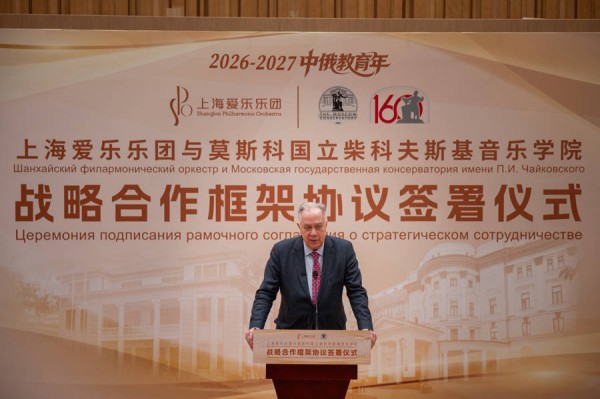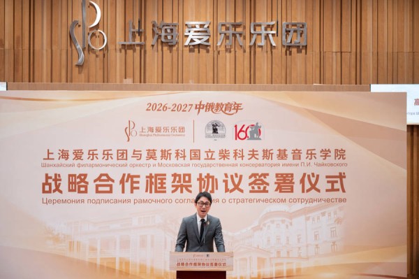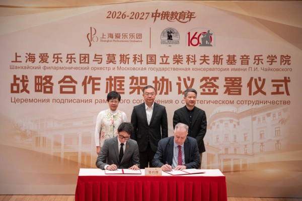 3月16日下午,上海爱乐乐团与莫斯科国立柴科夫斯基音乐学院在上海正式签署战略合作协议,双方将围绕艺术生产、人才培养、联合创作、资源共享、艺术教育及青少年音乐启蒙六大维度,开启为期三年的深度合作。