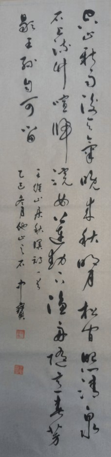 王中宝,号他山之石。生于1958年8月,农民出身,私营企业工作,业余书法爱好者。现为义乌市书画研究会会员,佛堂镇书法家协会会员。从小酷爱书法艺术,利用工作之余坚持钻研书法。几十年来临帖无数。古代王羲之,赵孟頫, 颜真卿,孙过庭,张旭,怀素,等名家书贴,全部临遍。从中汲取书法笔法之精华,结合本人个性创作。擅长草书,章法流畅,风骨结体自在,意境高远。取得了一定成就,得到了许多书法同仁及专业老师的好评。