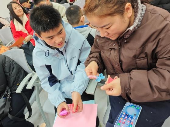 活动最后,在舒缓温馨的背景音乐中,家长们动手制作专属亲子礼物,用文字与手工传递理解、包容与关爱,将现场温情推向高潮。