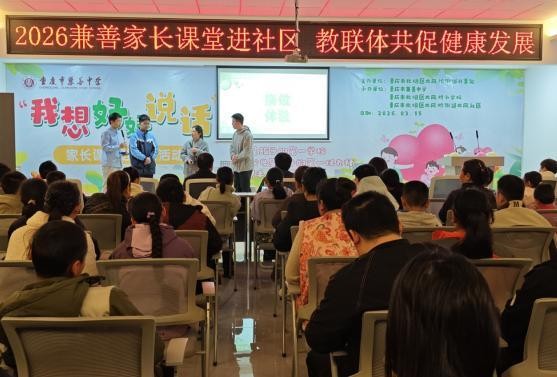 为深入推进家校社协同育人,搭建亲子沟通桥梁,引导家长掌握科学的沟通方法,助力青少年健康成长,2026年3月15日下午,由北碚区龙凤桥街道办事处主办,重庆市兼善中学、重庆市北碚区龙凤桥小学、龙凤桥街道龙凤社区联合承办的“我想好好说话”家长课堂进社区活动,在龙凤社区党群服务中心温情开展。龙凤桥小学五六年级部分家长与学生共同参与,在沉浸式互动中感受沟通的力量,共赴一场温暖的心灵之约。