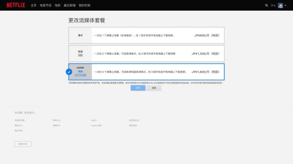 Netflix 实施订阅制,套餐有三种,美元售价分别为 7.99,11.99, 15.99 美元。分别支持最多一台设备/两台设备/四台设备同时在线,同时分别提供普通分辨率/高清/超高清分辨率。(这里说的是美区图片是日区) PS:付费方式只支持外币信用卡/paypal 如果是新账户,绑定支付方式后,第一个月可以免费使用,之后会按月扣款。