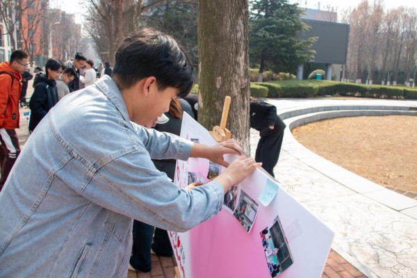 活动现场还设置了“花开思美·爱心寄语”留言墙与“公益瞬间摄影打卡”两大互动环节。师生们在彩色便签上写下对女性成长的祝福、对公益实践的感受,拼贴成爱心主题墙,营造出温暖向上的氛围。大家纷纷用镜头记录下手作创作、爱心捐赠、义卖互助的感人瞬间,定格属于这个春天的温暖记忆。完成任意一项互动,即可获得集章资格,进一步调动了师生们的参与热情,让公益不再是单向付出,而是有温度、有回响的双向奔赴。