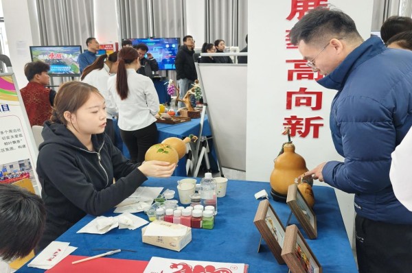 在互动体验区,非遗技艺传承现场创作环节吸引了众多师生驻足围观。学生们在专业教师的指导下,手持刻刀、烙笔等工具,专注地进行剪纸、葫芦烙画创作。从起稿构图到精细雕琢,每一个步骤都凝聚着匠心与巧思,让在场观众直观感受到传统技艺的独特魅力与创作过程的科学严谨。学生们一边示范操作,一边向围观师生讲解非遗技艺的历史渊源、工艺原理与文化价值,将科普知识融入技艺展示,让传统文化在实践中得到传承与传播。