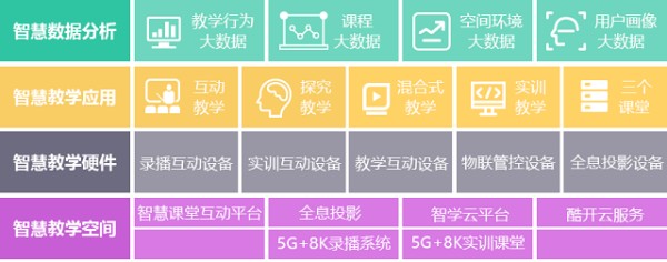 该方案围绕“为学习者设计真实世界”和“更好地激励和驱动学习者自主学习”理念,囊括5G+8K课堂视显系统、智慧互动课堂、5G+8K实训互动课堂、全息三个课堂、智学云平台、酷开云服务和智慧环保空间七个部分,代表了国内高等教育信息化领域最领先的设计理念、最先进的技术运用、最强大的功能实现,是国内唯一贯穿教学和学习、资源和互动、软件和硬件、可靠和安全、智能和智慧等众多要素的设计方案和平台系统。