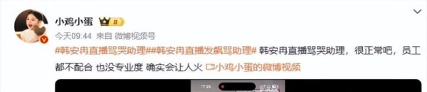 参考资料:澎湃新闻 韩安冉直播骂哭助理引发网友争议
