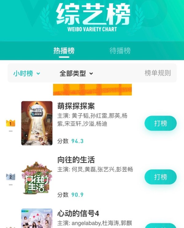 榜首是今年的热门节目“可爱侦探”,主题是推理侦探。因为节目形式新颖,而且节目邀请的嘉宾也有多样性,他们能得到网友的喜爱和支持。