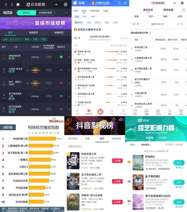 根据第三方平台数据显示,首期节目播出后包揽云合综艺正片有效播放市占率霸屏榜、灯塔全网综艺正片播放市占率排行榜、艺恩娱数综艺播放量指数排行榜、Vlinkage网络综艺播放指数榜、微博综艺影响力榜、抖音影视榜(综艺类)六大榜单TOP1。#种地吧第三季开播#、#种地吧 爆哭#、#一个藏医的心愿#等话题持续发酵,相关热搜接连刷屏社交媒体,引发网友热烈讨论。
