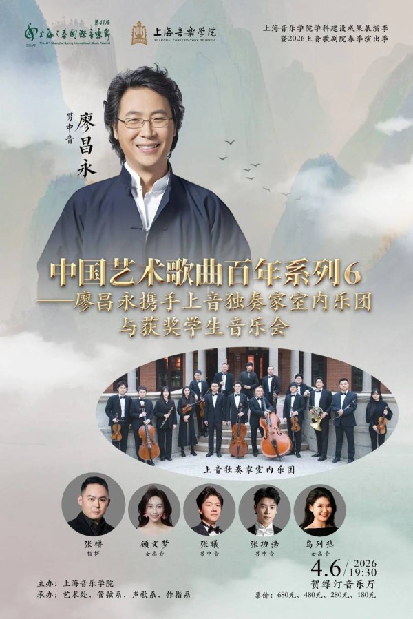 上音既为观众带来高品质的艺术享受,也为青年人才搭建广阔展示舞台。“艺青春”系列,集结帕格尼尼国际小提琴比赛金奖、金钟奖等国内外权威赛事获奖青年音乐家。“闪耀新星”音乐会汇聚全国十一大音乐院校精英,构建跨地域艺术协作平台。上音在“上海之春”连续六年推出的“中国艺术歌曲百年系列”,将音乐、诗词与书画融为一体,展现中国艺术歌曲百年底蕴,此次将由廖昌永携手上音独奏家室内乐团与获奖学生共同献演。“致敬经典·逐梦苍穹”交响音乐会则聚焦经典与原创,其中徐坚强原创交响合唱《华夏圆宇》以恢弘旋律礼赞航天精神,彰显新时代文化自信。