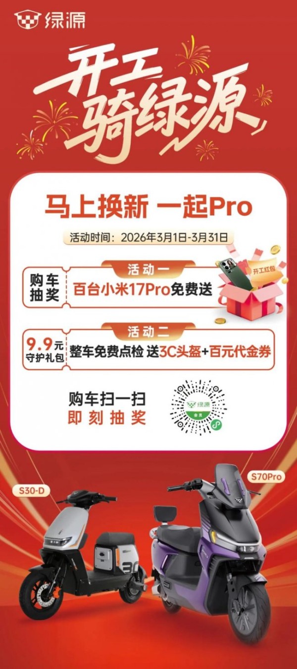 高空的品牌共鸣,必须要有坚实的商业落地承接。绿源敏锐地抓住了节后复工的黄金窗口,在2月28日正式打响“开工骑绿源 马上换新 一起Pro”的终端战役,将线上的声量瞬间转化为线下的销量。
