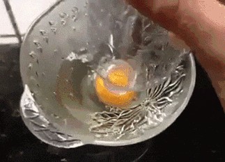 将瓶口对准蛋黄,捏住瓶身将鸡蛋吸入瓶中,并迅速将装有蛋黄的瓶子拿开,非常容易就可以分离。