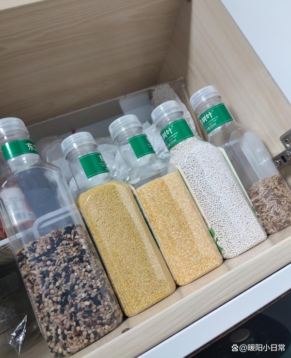 塑料瓶也是我们生活中常见的物品,很多朋友会将塑料瓶都收集起来充当废品卖,但往往也卖不了几个钱,堆积在家里还非常的占空间。其实废弃的塑料瓶我们也可以加以利用。只需要将塑料瓶清洗干净并晾干水分,然后把家里备有的一些红豆、绿豆、黄豆之类的五谷放在里面收纳。这样不仅拿取的时候很方便,拧开盖子就行。而且塑料瓶一般都是透明的,还能很好的分辨里面的物品。这个利用塑料瓶来分装五谷的方法整洁又方便。