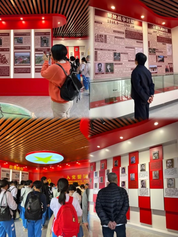 红色洗礼,悟初心之重。下午,走进红色文化中心,聆听讲解员声情并茂地讲述革命历史,那些英勇无畏的战斗场景、可歌可泣的动人故事,如同一幅幅生动的画卷在眼前徐徐展开。触摸烈士遗物,指尖传递来的不仅是岁月的温度,更是他们坚定的信仰和无私的奉献精神。参观珍贵文物与历史照片,见证了革命先烈们在黑暗中摸索前行、在枪林弹雨中奋勇杀敌、在艰难困苦中坚守初心的英勇奋斗和壮烈牺牲。这一刻,同学们深刻领悟到:红色基因,是革命先辈用鲜血和生命铸就的宝贵财富;传承红色基因,汲取奋进力量,是我们新时代青年义不容辞的责任与使命。