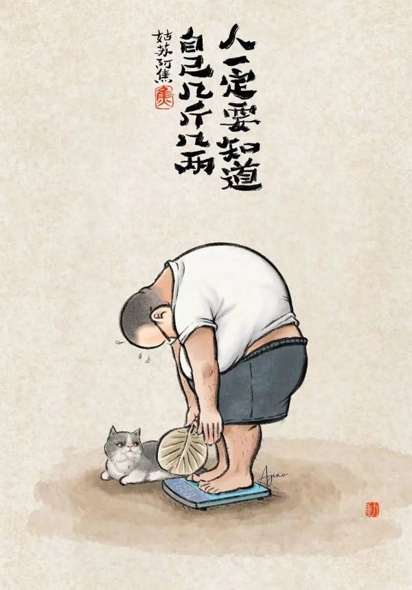 关注姑苏阿焦的公众号很久了,喜欢姑苏阿焦的漫画,是从他那只猫可爱开始的,猫慵懒的自得其乐,被他敲到好处的在画面点缀的惟妙惟肖,和憨厚笨拙的二胖相得益彰,携手一起在生活的红尘中摸爬滚打,生动活泼,幽默风趣,看阿焦的漫画真的是超级解压。
