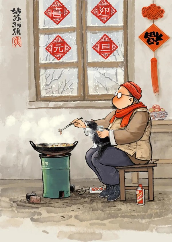 作者姑苏阿焦,本名焦佃毅,毕业于苏州工艺美院,作品风格独树一帜,长期秉持不滥情,不随流,不曲高和寡,让艺术生活化的创作理念,以寻常生活中的点滴描绘人生的欢喜和自在。