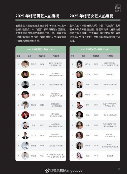 2025年度综艺排行榜发布