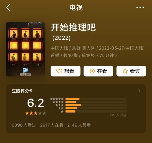 《开始推理吧》豆瓣评分6.2,推理综艺为何难“出圈”?