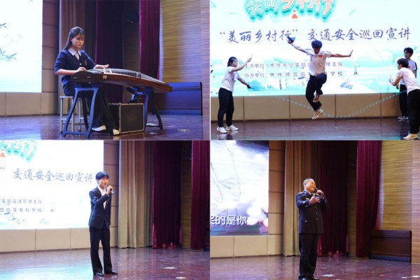 宣讲中,焦作交警精准聚焦大学生群体出行特点,将交通安全知识与特色文艺表演深度融合,精心编排演绎了一系列交通安全特色文艺节目。《车轮上的警示》《头盔为谁而戴》等选取大学生身边事件且直击出行安全痛点,以“身边事”警醒“身边人”,使学生们深度了解各类交通违法、交通陋习的致命危害和遵规守法、文明出行的重要意义;《报考驾照那些事》贴合大学生考取机动车驾驶证需求、学习掌握交通安全法律法规、技能的知识科普,搭配我校学生活力满满的花样跳绳、悠扬雅致的古筝独奏、耳熟能详的校园歌曲等触动人心的情感类作品,让广大学生在欣赏文艺魅力、感受欢乐氛围的同时,潜移默化地汲取交通安全知识,深刻认识到交通安全的重要性,切实提升自身交通安全意识和自我安全防护能力。