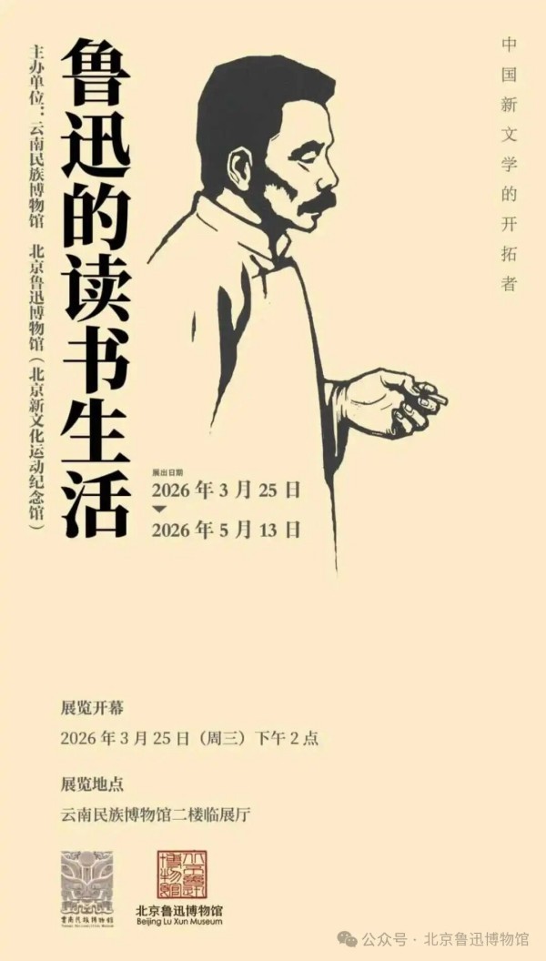 2026年3月25日,北京鲁迅博物馆(北京新文化运动纪念馆)与云南民族博物馆联合主办的“鲁迅的读书生活”展览在昆明开幕,展期将持续至2026年5月13日。