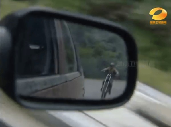 张雪一个人,骑着那辆破摩托,在寒风里追着采访车跑。