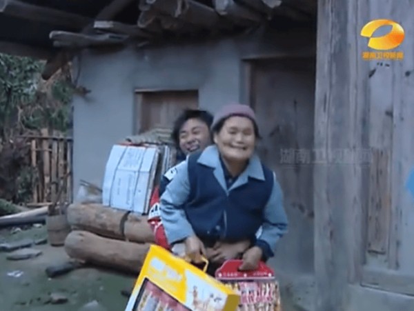 镜头里,他用力抱起奶奶。