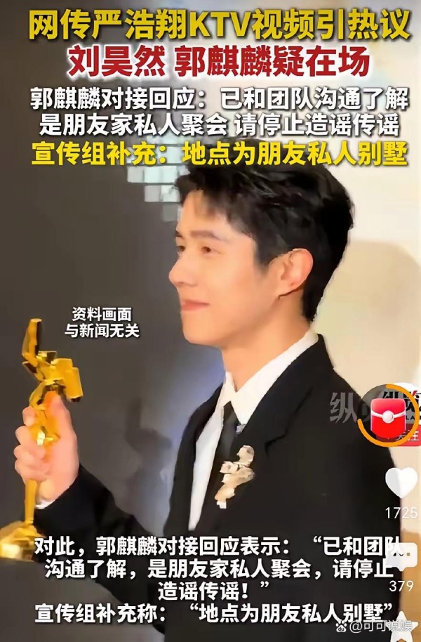 网传郭麒麟、刘昊然、严浩翔现身商务KTV的瓜刚刷屏,郭麒麟团队直接火速对接回应,当场戳破谣言!