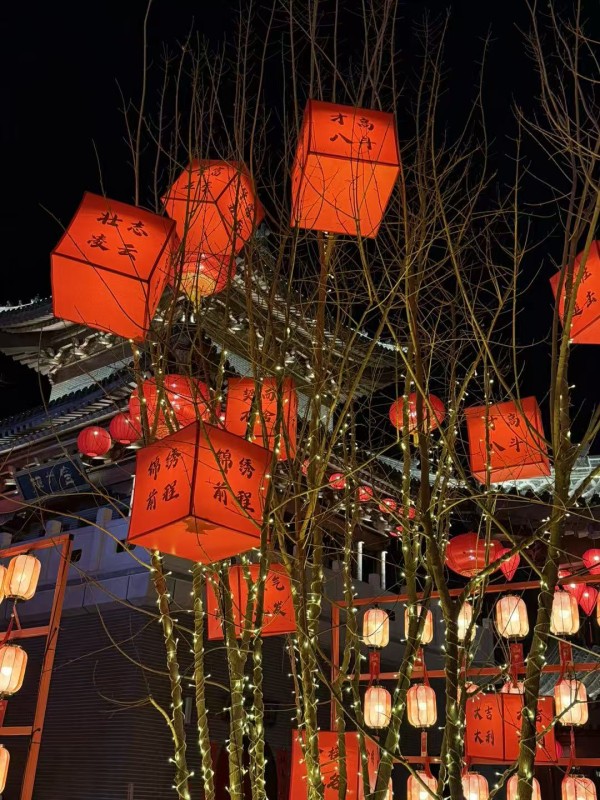 图为邯郸道历史文化街区里悬挂在树上的成语灯笼。新华网 普韵乔摄
