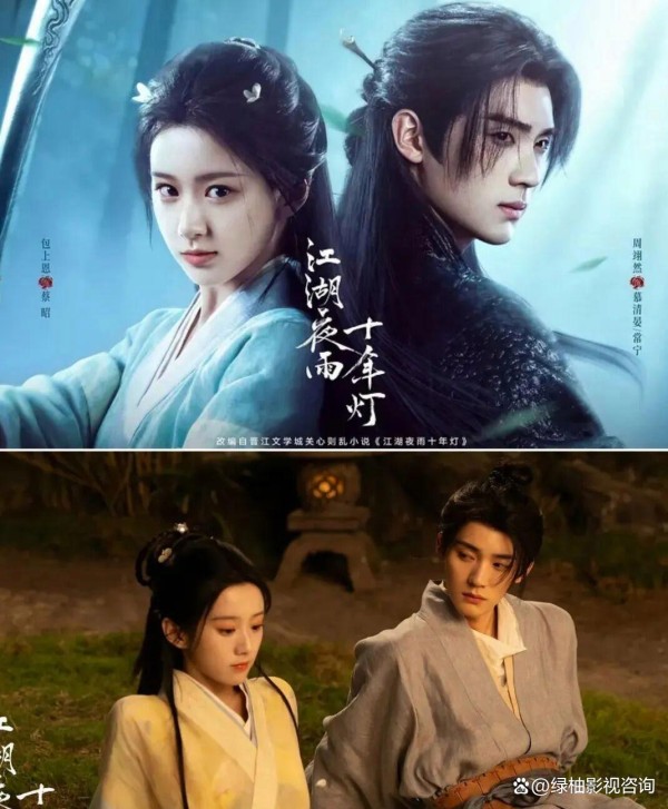 《江湖夜雨十年灯》,热度67.51, 这部武侠剧争议有点大,喜欢的人夸它有烟火气,江湖不只是打打杀杀,还有人情世故;不喜欢的人嫌它节奏慢,武打戏不够多。 但热度倒是没降。 周翊然演的慕清晏是个疯批少主,表面温润公子,内里偏执阴鸷,这种双面人设挺带感的,能看出他演技比之前有进步。 包上恩演的侠女有点佛系,俩人一个追一个躲,拉扯感是有的。 画面是真的很美,侣皓吉吉的审美在线,随便一截都是壁纸。 但怎么说呢,可能我对武侠的期待还是那种快意恩仇,这剧更偏重情感和权谋,所以看得有点着急。
