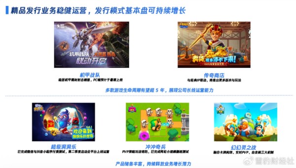 与此同时,公司持续引入海外精品作为增量来源(《冲冲奇兵》已完成两轮小规模删档测试。《幻幻灵之战》已在海外获得良好反响),形成“存量长青+新品补充”的结构,这使发行业务具备更强的稳定性与可预期性。