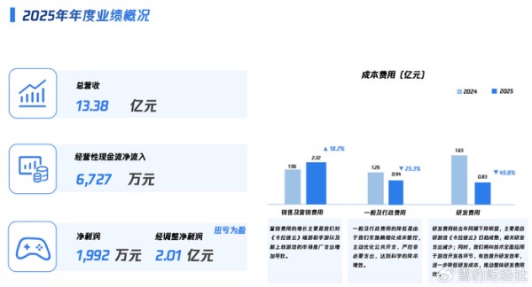财报显示,2025年公司营收13.38亿元,净利润1992万元,经调整净利润2.01亿元,告别连续五年亏损;经营性现金净流入6727万元,持续保持正向流入,财务状况显著改善。
