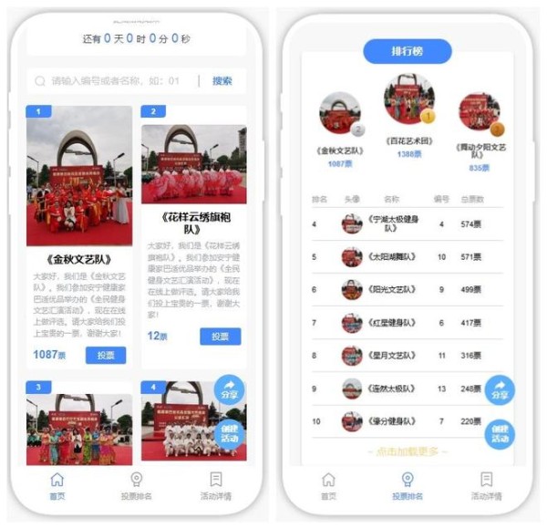 上传到龙艺秀投票平台可以进行投票点赞打call,后台可开启排行榜,选手排名一目了然。