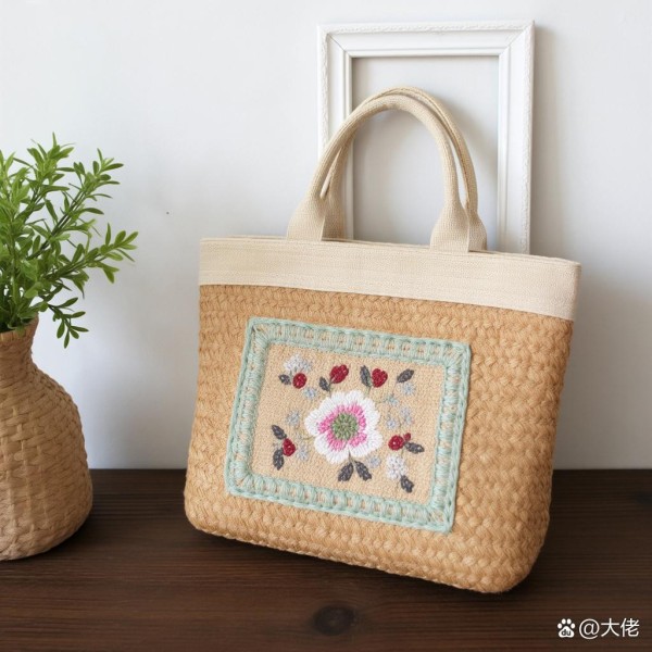 在阳光下,米白编织手提包静静躺在木质桌面...全文